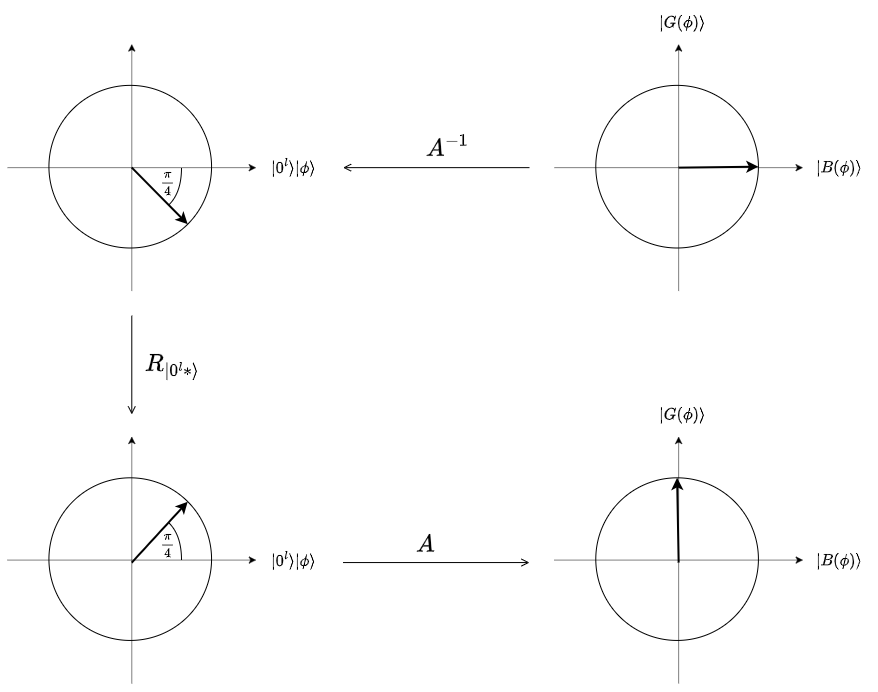 This, however, only works when the probability to observe the oracle qubit as, say, 1 is constant. Here we go a little bit on a tangent and explore Oblivious Amplitude Amplification (OAA). In OAA we are able to run AA on unknown input states, which normally is not possible. For reference, see these lecture notes here for an excellent explanation of Oblivious Amplitude Amplification. We will make heavy use of these lecture notes to derive our learning algorithm.