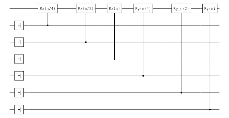 The first qubit is used to model the unkown qubit state. In our circuit we will input the unkown qubit state to the first qubit in the circuit above and search (AA) for the parameter configuration that tunes the qubit to 0. Measuring the parameter qubits allows us to then reconstruct parts of the unkown qubit state.
